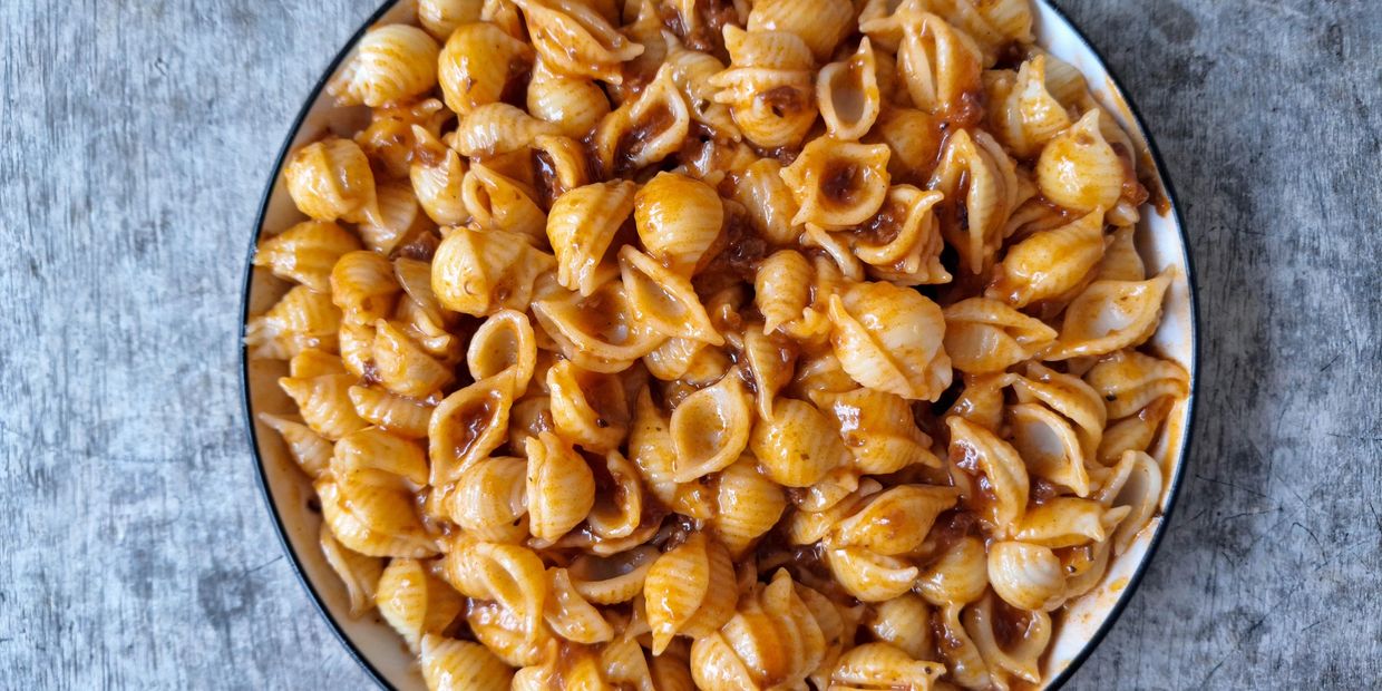 IN THE SAME POT YOU JUST COOKED THE 1 LB BEEF IN, PLACE THE 1/2 MEDIUM DICED SWEET ONION IN THE POT AND COOK DOWN ABOUT 3 MINUTES. THROW IN 1 TBSP MINCED GARLIC AND 1 1/2 TSP ITALIAN SEASONING AND MIX; ADD 2 TBSP OF FLOUR TO THIS POT AND STIR FOR 1 MINUTE; STIR IN 2 CUPS BEEF STOCK TO THIS MIXTURE THEN 15 OZ. TOMATO SAUCE FOR ABOUT 7 MINUTES; STIR IN PASTA, BEEF AND 3/4 CUP HEAVY CREAM FOR 2 MINUTES; ADD SALT AND PEPPER TO TASTE; STIR IN THE 6 OZ. OF SHREDDED CHEESE UNTIL MELTED